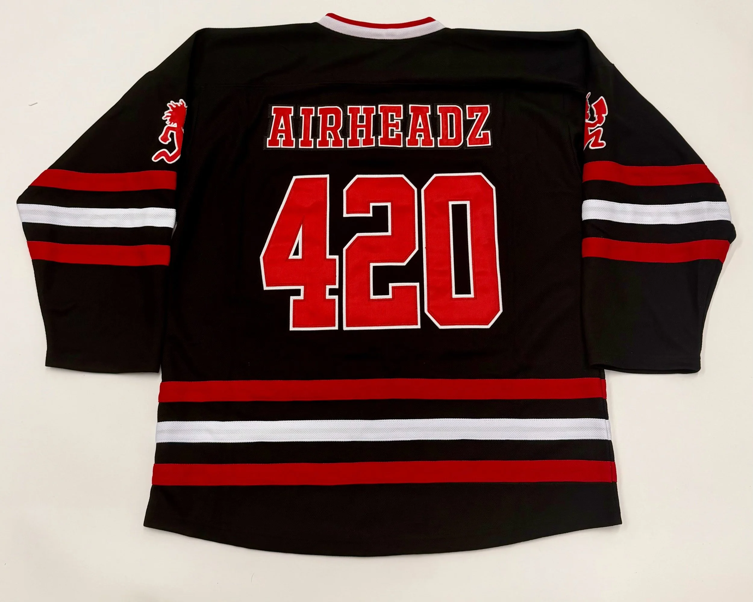 Merch › Airheadz 420 Hockey Jersey Image 1 of 2 Image 2 of 2 Airheadz 420 Hockey Jersey $150.00 Airheadz 420 Hockey Jersey Size: Medium Large Extra Large XXLarge XXXLarge Add To Cart Added! Airheadz 420 Hockey Jersey